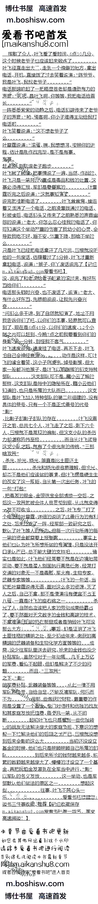 温馨提示:浏览器阅读模式如果不显示章节内容,点击刷新,找到底部设置菜单,进入设置菜单里点击退出畅读模式即可高速免费阅读!所有浏览器的畅读模式都会影响显示尽量退出畅读模式,阅读体验会更好!