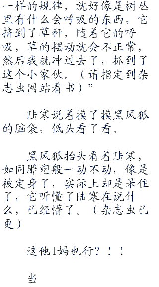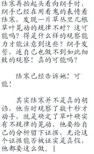 “那片草丛,所有草叶都是随风摇摆的,遵循这固定的规律,只要风向不变,这个规律也不变,但是……我看到了有几根草,晃动的规律与其他草不一样,嗯……这种不<div class="divimage"><img src="<div class="divimage"><img src="<div class="divimage"><img src="<div class="divimage"><img src="<div class="divimage"><img src="<div class="divimage"><img src="<div class="divimage"><img src="<div class="divimage"><img src="<div class="divimage"><img src="<div class="divimage"><img src="