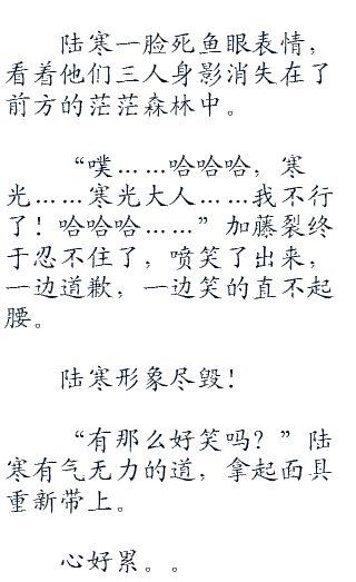虽然没听到笑声,但陆寒能想象得出加藤裂几人一脸憋笑的样子。