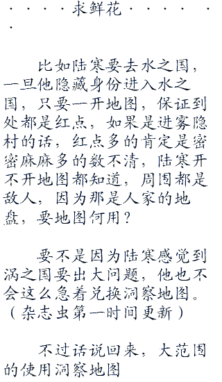 仅需二十元宝,就能查看方圆十公里所有敌人的数量与位置,听起来好像是太划算,这能力简直逆天!其实并不是,因为使用洞察地图是需要消耗查克拉的。