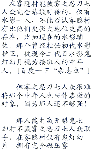 水之国雾隐村二代目水影鬼灯幻月!
