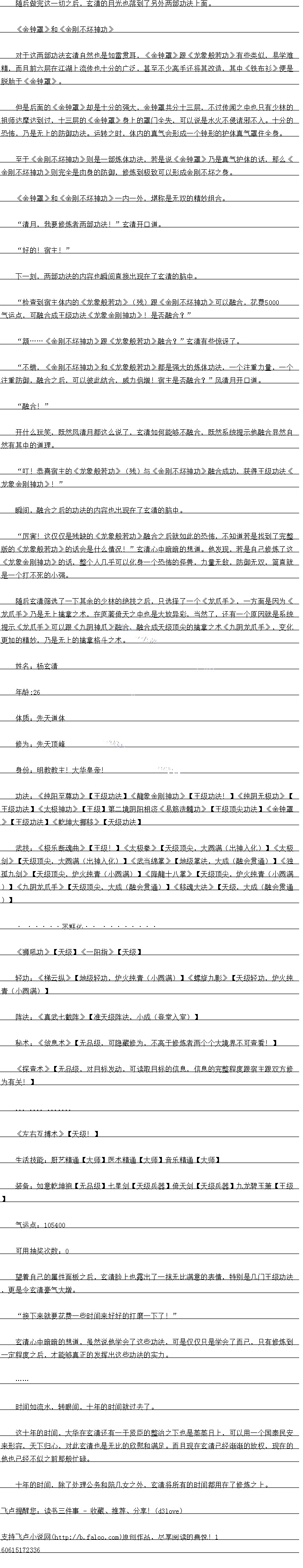 全十另外的一个儿子,二子杨震乾相一子杨震坤都继承了玄清的武学大赋,资质分的来