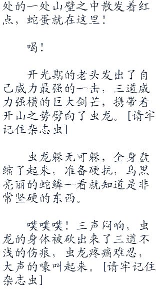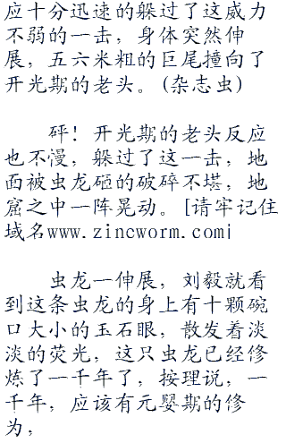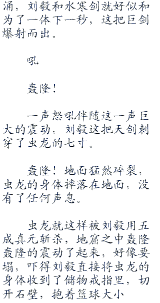砰!地洞内传来了一声巨响,随后又是虫龙的吼声,看样子,开光期的高手好像正在和虫龙交战。