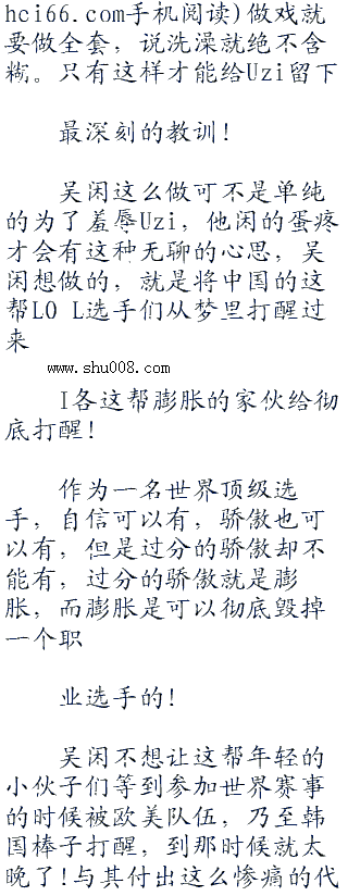 在这即将赢下这局SOLO,击败世界级ADCUzi的最关键时刻。吴闲竟然去洗澡了!