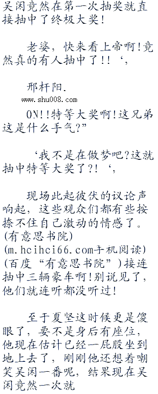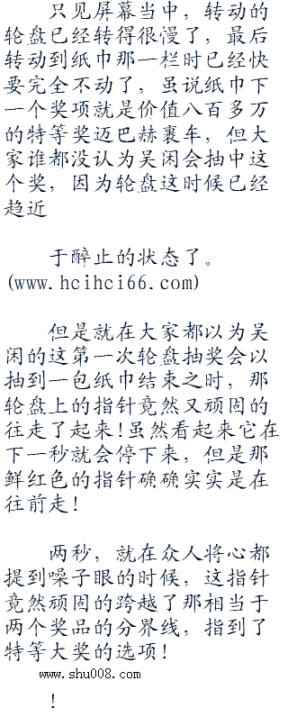 而在吴闲这边开始抽奖之后,所有观众们的目光也全都朝着吴闲这边汇聚了过来,毕竟吴闲刚刚连抽两辆玛莎拉蒂的运气实在是太逆天了,这时候大家都想要看看他在用轮盘抽奖的时候是否还会有这么好的运气!
