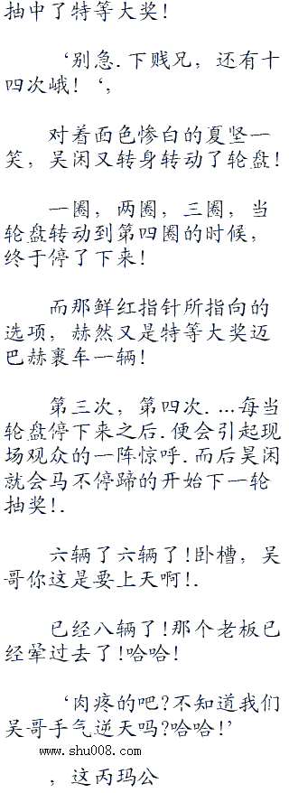 后台这里已经闹翻天了,但是前方的抽奖还在继续着。就在吴闲将轮盘转动之后,他便一口将剩余的三百万人气值全部兑换成了幸运果实!而就在吴闲使用掉幸运果实之后,就发生了之前后台出现的状况!