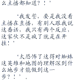 看着损失一半的血量,露cky很是心疼。这个血量在接下来打野的时候是很危险的,可是现在如果回家补充血量的话只会更亏,无奈之下露cky只能强撑着控制着只有半血的蜘蛛继续打野去了。虽然露cky现在身上还有两个血瓶,但在野怪的攻击下,他的血量只会越来越少的。