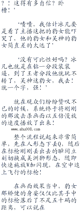 不过五五开也只不过是能救这EZ一时罢了,因为身后的豹女此刻已经切换成美洲狮形态,凶狠的朝着自己的猎物扑了过来!