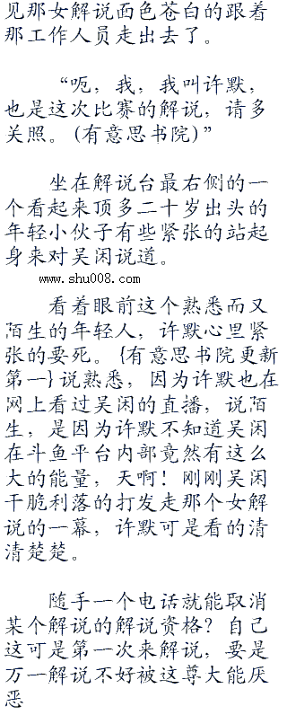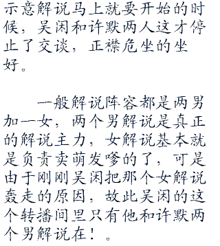 坐在解说台中央的是一名女解说员,不过看她的样子就知道她应该只