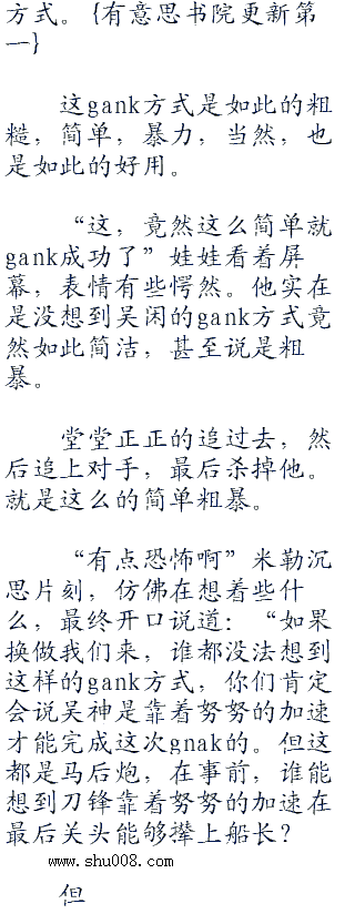 ssuay一开始也被那道从远处奔袭而来的身影吓“九三七”了一跳,不过随后他便变得有些愤怒起来,干什么,你一个没有大招的泰隆,还想来强行gank我?做梦吧!