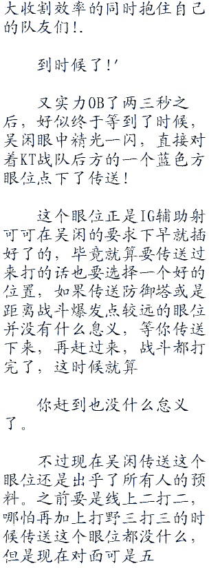 米勒你发现了没有,从刚刚一分钟一来,ig这边上下两路打的更加的凶悍了!.