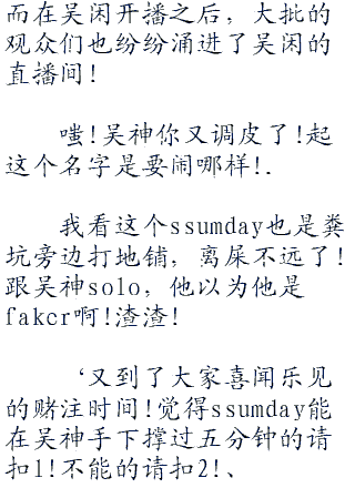 ssumday的剑姬躲在泉水的最深处,不过看起来这根本无法阻止吴闲击杀他的举动。在姿态小孩等人的帮助下,吴闲以悍然之姿再次冲进了泉水中的kt五人中央!