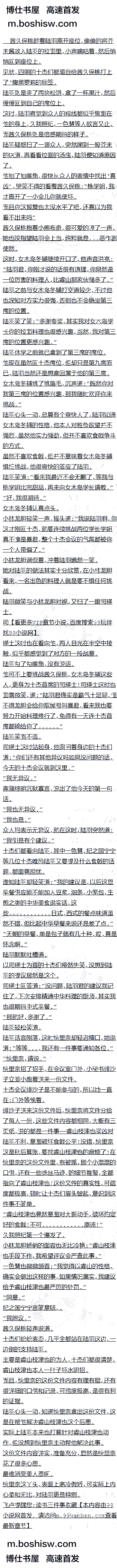 陆羽笑道:“看来我最近不会无聊了,等我与桃学姐比完甜品,再来向女木岛学长请教。”