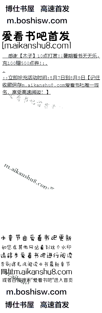 温馨提示:浏览器阅读模式如果不显示章节内容,点击刷新,找到底部设置菜单,进入设置菜单里点击退出畅读模式即可高速免费阅读!所有浏览器的畅读模式都会影响显示尽量退出畅读模式,阅读体验会更好!