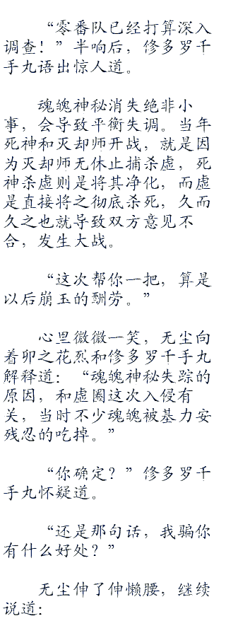 一直观察蓝染神色变化的无尘,也注意到他这细微的神情变化,当下心里只是一笑而过,这也是不可避免的事。
