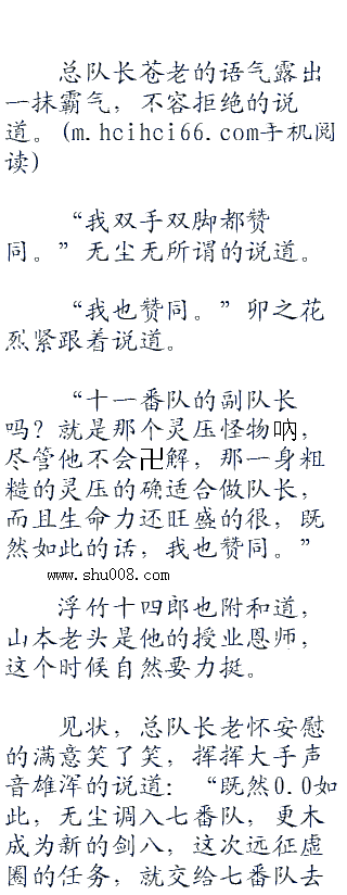 闻言,无尘看向了卯之花烈,估计这是她和总队长商量的后果。