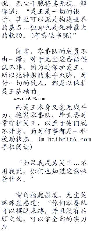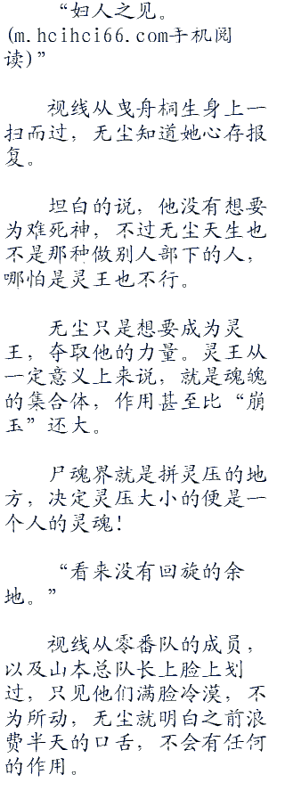 无尘摇摇头,再次重申道:“我不想和死神为敌,我也并不想要杀灵王,他是死是活和我没有关系…我唯一的目的…只是想要剥夺灵王的封号而已,最后由我取而代之。”