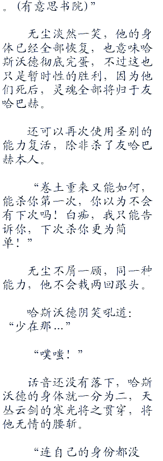 无尘的双眸格外黯淡无力,浑身透着无力,眼见哈斯沃德被制服之后,直接一屁~股的坐在地上。