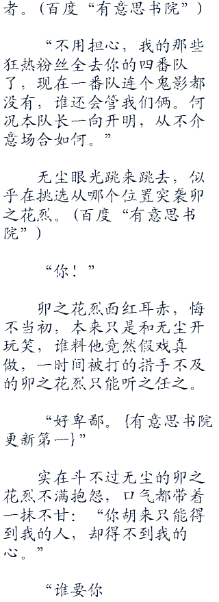 卯之花烈惊慌失措,俏脸发红,同时疑神疑鬼的左顾右盼,生怕此时来一个搅局