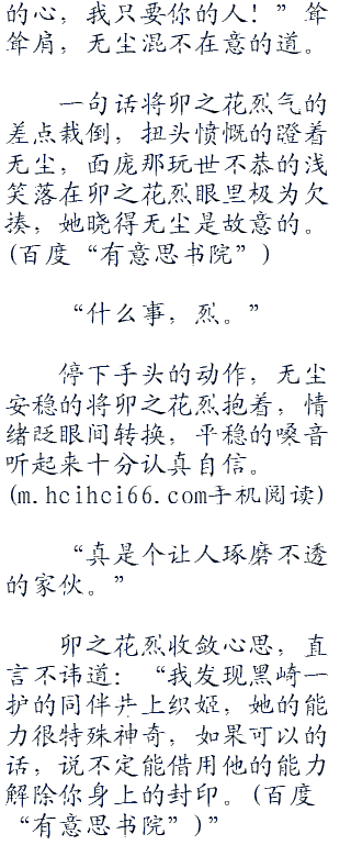 纵使知道这女人是带刺的玫瑰,无尘也忍不住想要去碰触碰她婀娜的身姿。