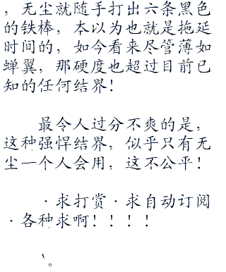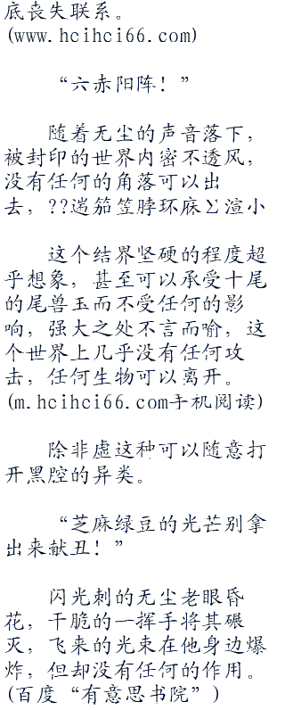 无尘冷笑一声,同时手中射出六条黑色的铁棒。六方形的特殊结界顿时形成,将整个世界都隔离而开,和外界彻