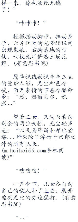 无尘惊咦一声,看着神色痛苦的日番谷东狮郎不好意思挠挠头,道歉着:“哎呀呀,这是不好意思了日番谷队长,本来想要一次性的干掉你,让你无痛苦的去死,谁料你的反应速度既然这么快,以致于我砍偏了,不过没有关系,我现在补上一刀!”