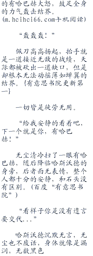目睹无尘双眼不对劲,放着择人而噬的幽光,有哈巴赫感到深深的不妙,无尘那饥渴的眼神,看的他灵魂刺痛无比。