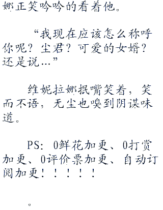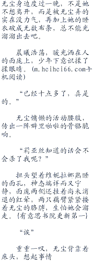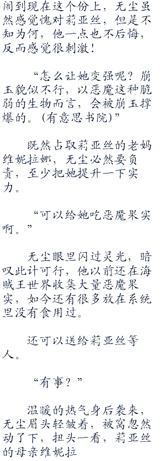 无尘主动和维妮拉娜来开一段具体,头摇的像是拨浪鼓,以前他确实有这种想法,但最近莉亚丝对待自己不错,关怀备至,如果被莉亚丝以后知道,无尘还真怕她会伤心。