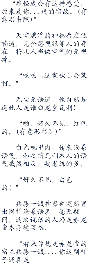 兵藤一诚紧紧抓住左臂,或者干脆说按住他的神器“赤龙帝的笼手”,那里有灼热的气流传入体内,似乎要将兵藤一诚整个人都要焚毁,令他十分的不爽难受,好像是碰到重大的天敌。