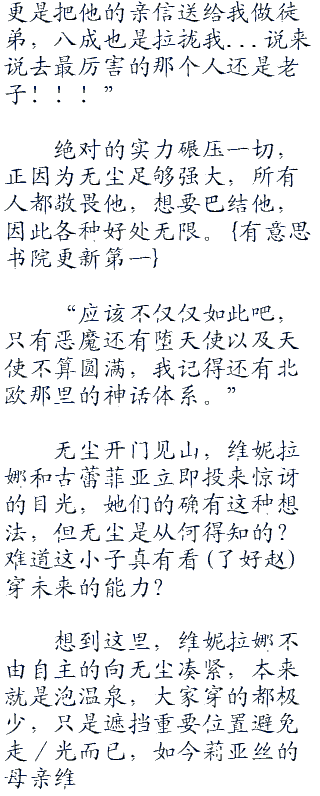 无尘心里暗暗吐槽,忍不住对萨泽克斯升起一抹妒忌,认为自己各方各面都完爆他,尽管获得佳人的身体,却始终无法掠夺她的心。