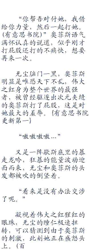 无尘看的出来,虽然伟大之红某些方面也很单纯,和无限龙神奥菲斯却有本质区别,受到如此巨大的羞辱,无尘可以肯定这条小母龙要暴走了。