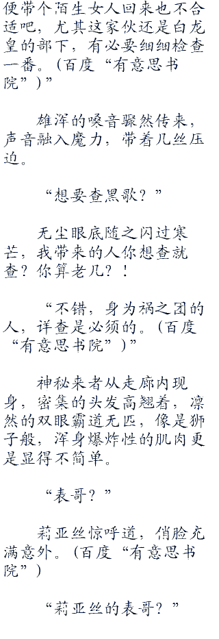 莉亚丝厉声道,暗骂无尘可恨,这是她的家里,随便带个人不打召唤也就算了,最要命的是这家伙是宿敌“祸之团”的人。