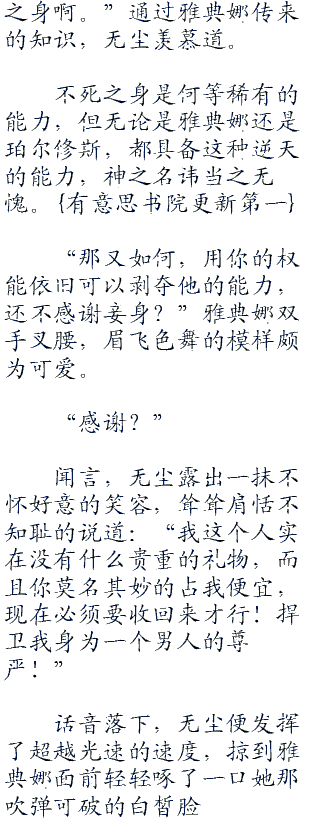 正考虑推开雅典娜的时候,脑海内涌现一堆关于珀尔修斯曾经的过去,恍惚间,无尘明白为何雅典娜献上自己的红唇。