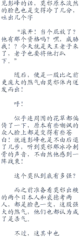 “别说我没有隐瞒,就是动手,你能奈我何?让你一只手我也能瞬间干趴你。别太把自己当一回事,更不要没事找事!”