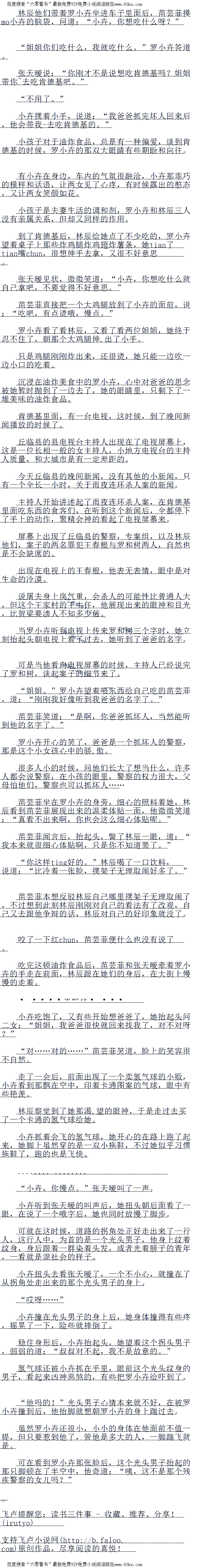“警察?”光头男子闻言,冷笑一声,他俯视着这个小女孩,道:“你爸爸是个屁的警察,他是个杀人犯,已经被抓了。”