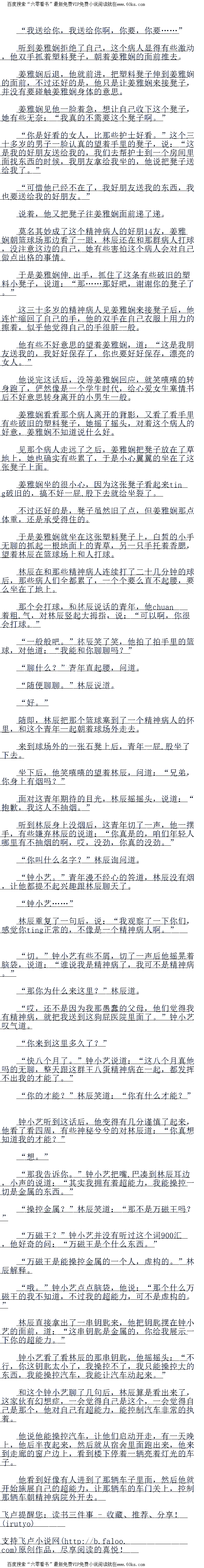 钟小艺滔滔不绝的跟林辰吹嘘着他那所谓的超能力,一说起自己的超能力,钟小艺显得十分来劲。