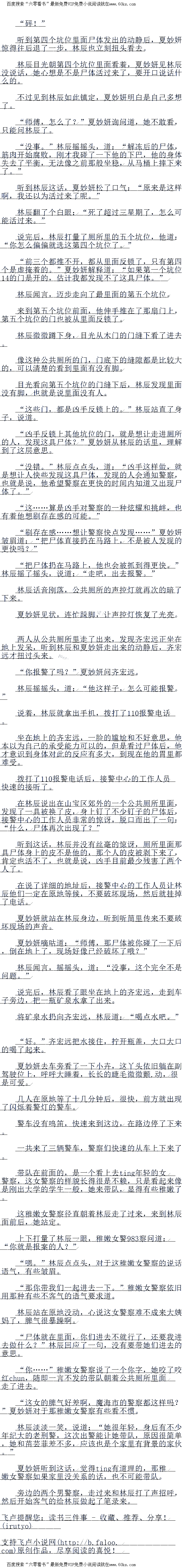稚嫩女警察看到地面上那堆呕吐物后,她厌恶的皱了皱眉头,继续迈步上前,看到了第四个坑位内,马桶旁边地上倒着的那具尸体。