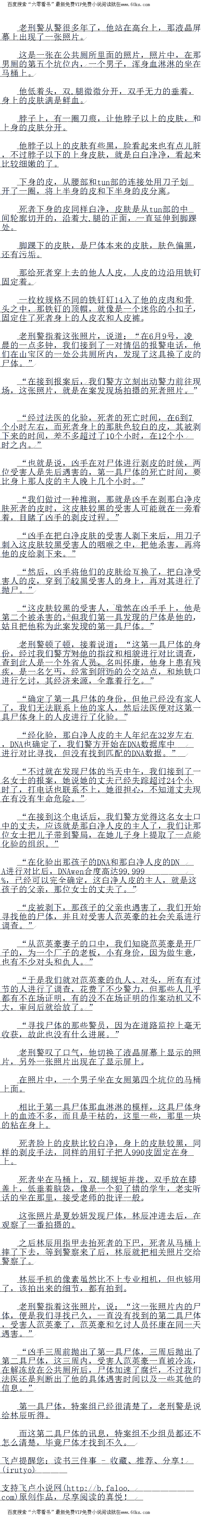 刑警老连闻言,微微点头,说道:“第一具尸体,乞讨人员怀康,他是外省人员,在这一带行乞,据一些经常看到他的人说,他在精神上,似乎有一点问题。”