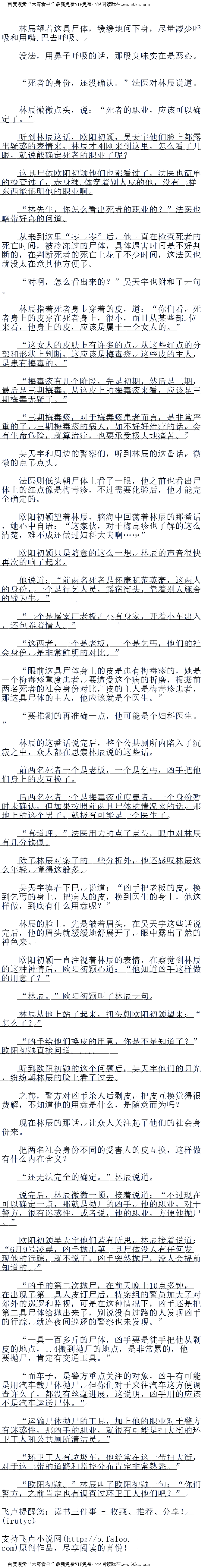林辰没正面回答这个问题,他道:“把她叙述发现尸体的经过说一遍。”