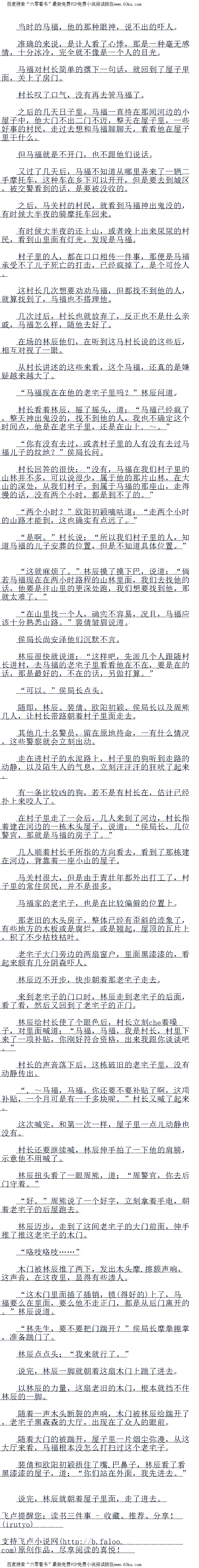 马村长只是知道马福肯定牵che了大案子,但是具体是什么案子,他就不知道了。