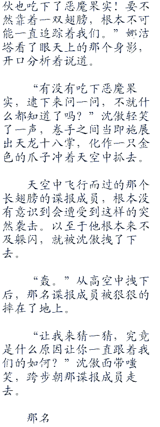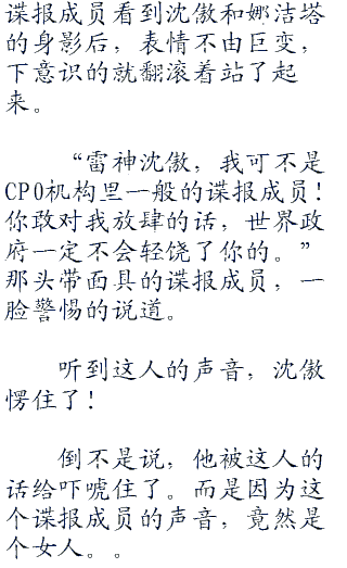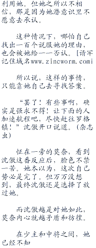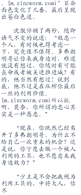 “我因为什么而针对你,其实你应该是最清楚的吧?莫奈,我知道你对多弗朗明哥的忠诚。而他把你指派到我身边来,肯定也暗中交代过让你打探我的秘密。”沈傲双手环抱,悠悠的说道:“老实说,你对多弗朗明哥忠诚的态度,让我十分的欣赏。也正因为如此,我对你做的才仅仅是略为刁难。要不然,你以为现在还能够好好的呆在我这艘军舰上?推进城里关押的罪犯可不在少数,要把你莫奈送进去,对我来说不过是易如反掌的事情。”