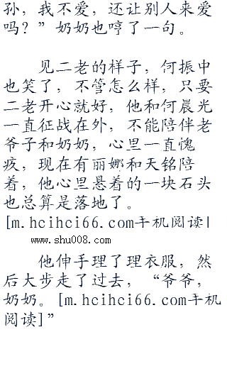 何振中循声望去,立刻看见了奶奶从房子中走了出来,脸上满是笑容,整个人都显得很有精神,容光焕发的,心情看上去很好。他也松了口气,看来,的确,老人就应该享受着天伦之乐。