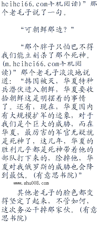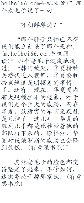 的确,全世界“四一零”的人都知道,华夏从以前的各种忍让,妥协,只会抗议变成今天这个铁血,一言不合就敢出兵的强势,跟那个华夏死神有着密不可分的关系。甚至很多人都知道,只要干掉华夏死神,那么,华夏现在的实力和势头起码降一半。
