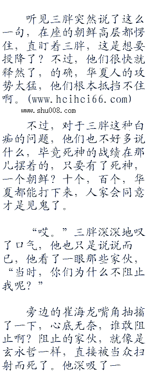 毕竟,这支朝鲜部队受到华夏的影响太大了,华夏对他们的弱点和应对手段了如指掌,所以,三胖背叛华夏,与华夏敌对,从一开始就是个巨大的错误,如果世界上有后悔药,三胖肯定会不惜一切代价搞到手的。