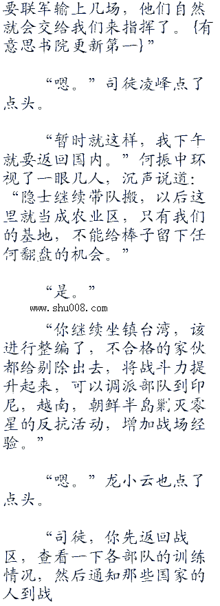 “扩军早就开始了,现在五十个师的新兵已经征集完毕,征召的全都是退伍的士兵,新兵的队列训练只进行了一周时间,目前,在进行常规训练了。”龙小云沉声说道:“另外,新建立的空军飞行学院也完成了招生计划,正在进行理论学习。”