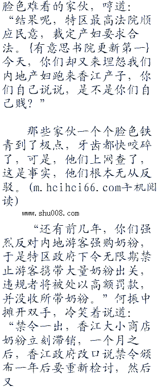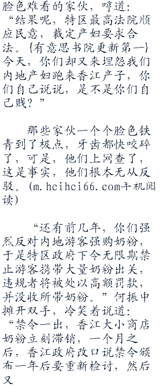 “既然如此,那么,我只能是你们贱。”何振中脸上露出了一抹冷笑,大声说道:“就拿孕妇到香江生子一事,是不是你们都不满?”