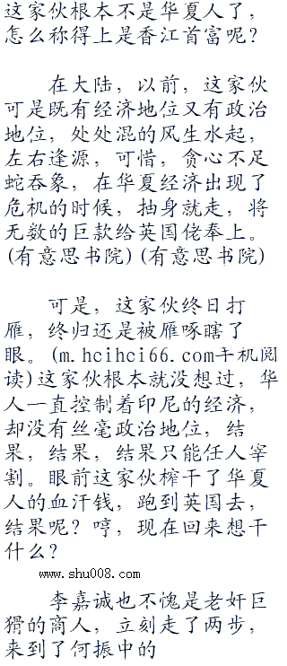 是非曲直,何振中记得很清楚呢,对于李嘉诚这种几乎控制了整个香江经济的家伙来说,他本来没什么太大的感