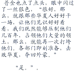 那个老毛子也不敢多说什么,万一被记恨上,秘密处决就惨了,他不敢耽搁,直截了当地说道:“华夏军队对外蒙发动了进攻,现在,已经占领了乌兰巴托。”
