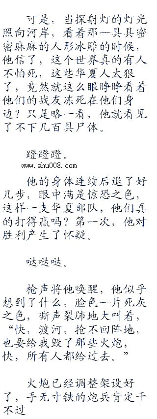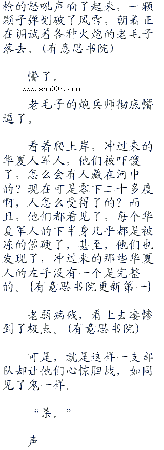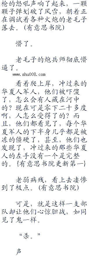 冰层碎裂的声音不断地响起,积雪不断地抖落,一个个潜伏的华夏军人苏醒了过来,或许,他们听不见首长的命令声,或许他们已经快被冻死了,但是,当冲锋号声一响起来的时候,他们依然动了。