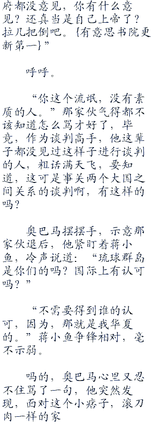华夏大使馆的会议室中,带着人气势汹汹来兴师问罪的奥巴马真的快忍不住了,心里早就在骂娘了,这些该死的华夏人竟然就把他们晾在这里?草,难道忘了几年前,美国说一,华夏不敢说二的事情了吗?